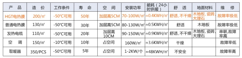 石墨烯采暖與其他采暖方式對比:
